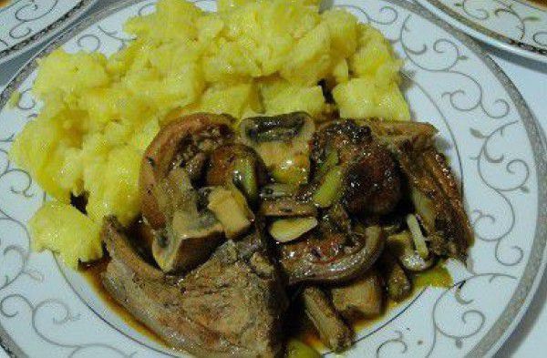 Котлеты хорошо обжариваются с обоих сторон – первую половину переверните, а затем другую половину. Лук-порей и грибы тушат в жаровне, а котлеты после обжарки добавляют к ним..